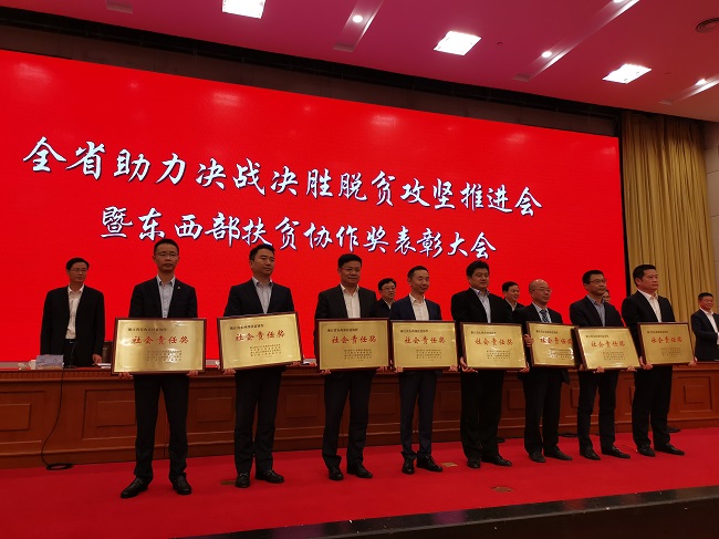 10月23日,為深入學(xué)習(xí)習(xí)近平總書記關(guān)于扶貧工作的重要論述,認(rèn)真貫徹落實黨中央、國務(wù)院關(guān)于東西部扶貧協(xié)作工作系列重要會議精神,激勵全省上下高質(zhì)量助力對口地區(qū)打贏脫貧攻堅戰(zhàn),浙江省決戰(zhàn)決勝脫貧攻堅暨東西部扶貧協(xié)作獎表彰會如期舉行,頤高集團獲“浙江東西部扶貧社會責(zé)任”獎。