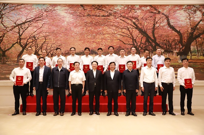 授證儀式上,吉林省省長韓俊為舟山市政協(xié)原主席江建國、頤高集團(tuán)董事長翁南道、西湖電子集團(tuán)董事長章國經(jīng)、雅戈爾集團(tuán)董事長李如成等13名新聘高端智庫專家頒發(fā)證書。吉林省委常委、副省長吳靖平,吉林省委常委、省委秘書長胡家福、吉林省委常委、長春市委書記、市長張志軍、吉林省人民政府秘書長安桂武參加會見。