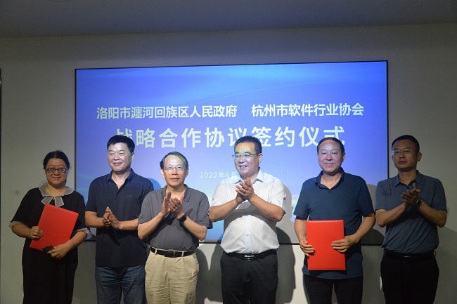 洛陽(yáng)市瀍河回族區(qū)政府與杭州市軟件行業(yè)協(xié)會(huì)進(jìn)行戰(zhàn)略合作協(xié)議簽約儀式。