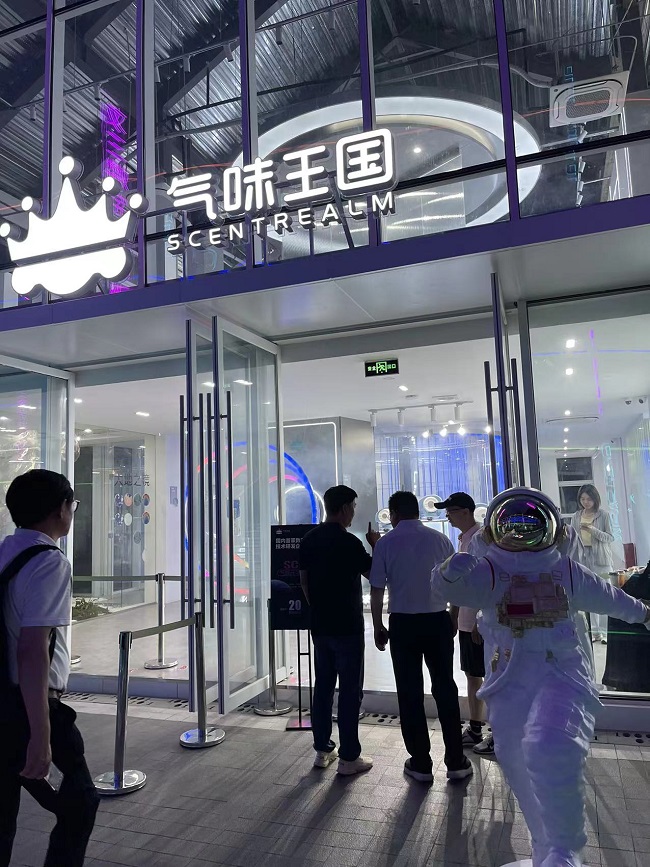 會(huì)后,與會(huì)嘉賓共同參觀文三數(shù)字生活街區(qū)。在未來感十足的“氣味王國(guó)”元宇宙香氛店中,體驗(yàn)算法通過識(shí)別面部表情推薦的“擁有自己身份標(biāo)識(shí)”的定制氣味。