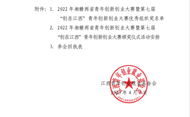4月11日,2022 年湘贛兩省青年創(chuàng)新創(chuàng)業(yè)大賽暨第七屆“創(chuàng)在江西”青年創(chuàng)新創(chuàng)業(yè)大賽頒獎(jiǎng)儀式在江西萍鄉(xiāng)安源區(qū)舉行。南昌頤高數(shù)字經(jīng)濟(jì)產(chǎn)業(yè)園榮獲大賽“優(yōu)秀組織獎(jiǎng)”稱(chēng)號(hào)。江西省政協(xié)副主席,工商聯(lián)主席謝茹,萍鄉(xiāng)市委副書(shū)記,代市長(zhǎng)熊運(yùn)浪,江西團(tuán)省委書(shū)記邱凌等出席。江西頤高總經(jīng)理陳鵬受邀參加并上臺(tái)領(lǐng)獎(jiǎng)。