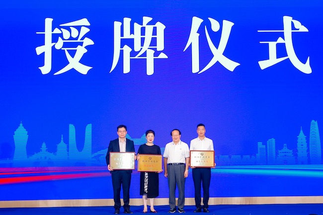 會上,浙江省政協(xié)原副主席 張蔚文為新增補(bǔ)的商會副會長杭州白金漢爵文旅開發(fā)有限公司浙滬區(qū)域董事長 胡哲明、浙江朗通家具股份有限公司總經(jīng)理 余惠莉、寧波明禾新能源科技有限公司董事長 盧杭杰進(jìn)行了隆重的授牌儀式。