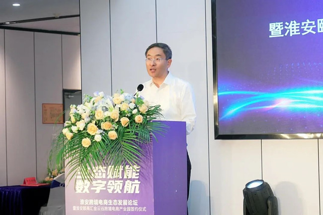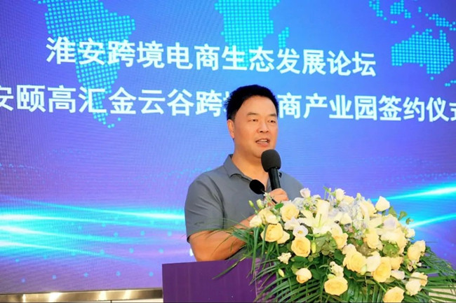 淮安市政府秘書長(zhǎng)、淮安經(jīng)濟(jì)技術(shù)開發(fā)區(qū)管委會(huì)主任劉愛國(guó)為本次活動(dòng)作開幕致辭。他首先代表淮安經(jīng)濟(jì)技術(shù)開發(fā)區(qū)對(duì)到場(chǎng)的嘉賓表示熱烈歡迎及衷心的感謝!劉主任表示:淮安跨境電商正從產(chǎn)業(yè)鏈集聚向生態(tài)鏈集聚、再到價(jià)值鏈集聚加速轉(zhuǎn)變。今天淮安頤高匯金云谷跨境電商產(chǎn)業(yè)園項(xiàng)目的落地簽約,就是我們打造淮安跨境電商產(chǎn)業(yè)生態(tài)的又一實(shí)踐。這里,將成為助推商貿(mào)企業(yè)“逐浪出海”的最優(yōu)平臺(tái),為企業(yè)逐浪上云、跨境出海增添強(qiáng)勁動(dòng)力。