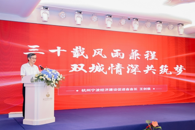 杭州寧波經(jīng)促會(huì)會(huì)長(zhǎng)王劍侯致辭,寧波經(jīng)促會(huì)在鄧小平同志發(fā)出“把全世界的寧波幫都動(dòng)員起來(lái)建設(shè)寧波”的號(hào)召下成立,30年來(lái)依然煥發(fā)著蓬勃生機(jī),離不開敢闖敢創(chuàng)、與時(shí)偕行的“寧波幫”。他強(qiáng)調(diào),杭州寧波經(jīng)促會(huì)要牢記習(xí)近平總書記的殷殷囑托,錨定前行方向,積極主動(dòng)融入國(guó)家改革開放大局,全面助力寧波城市的“三化轉(zhuǎn)型”;把“三服務(wù)”工作做實(shí)做透;唱好雙城記,共建都市圈,凝聚杭甬力量,加強(qiáng)協(xié)會(huì)、商會(huì)橋梁紐帶作用的發(fā)揮,持續(xù)為杭甬兩地經(jīng)濟(jì)社會(huì)發(fā)展貢獻(xiàn)力量。