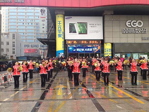 事實上,廣場舞代替開門炮,這種低碳環(huán)保的開市方式在頤高并不是一個新舉措。早在2013年,頤高數(shù)碼連鎖杭州公司就響應(yīng)集團(tuán)提出的不放開門炮的倡議,以獨特的敲鑼打鼓跳歡慶舞的方式迎接開市。在吸引了周邊群眾駐足觀看,贏得好評的同時,也曾引起央視、浙江衛(wèi)視等媒體紛紛報道。2014年,“拒絕開門炮,低碳開市”的方式由杭州迅速擴(kuò)大到頤高數(shù)碼全國各門店。