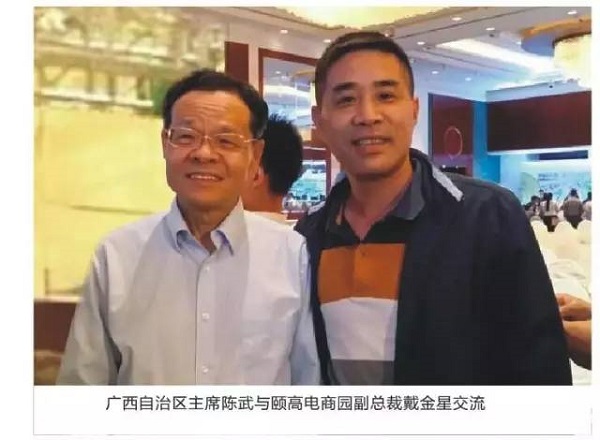 會議結(jié)束之后,頤高代表團(tuán)受到廣西壯族自治區(qū)黨委書記彭清華和廣西壯族自治區(qū)主席陳武的親切接見,頤高集團(tuán)代表團(tuán)代表向彭書記和陳主席匯報(bào)了頤高電商園的詳細(xì)情況以及未來的發(fā)展戰(zhàn)略,希望通過頤高電商園的運(yùn)營能力和電商資源,提升當(dāng)?shù)禺a(chǎn)業(yè)園區(qū)運(yùn)營水平,推動當(dāng)?shù)貍鹘y(tǒng)產(chǎn)業(yè)轉(zhuǎn)型升級。