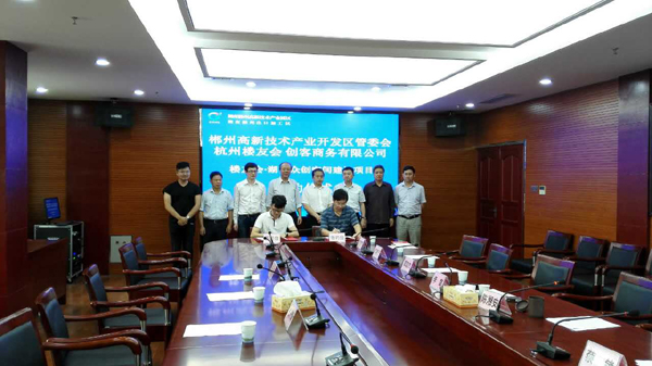 同日,樓友會湖南眾創(chuàng)空間正式簽約落地,聯合創(chuàng)始人徐金波和高新區(qū)管委會副主任蔡峰在郴州市副市長李庭見證下正式簽約。