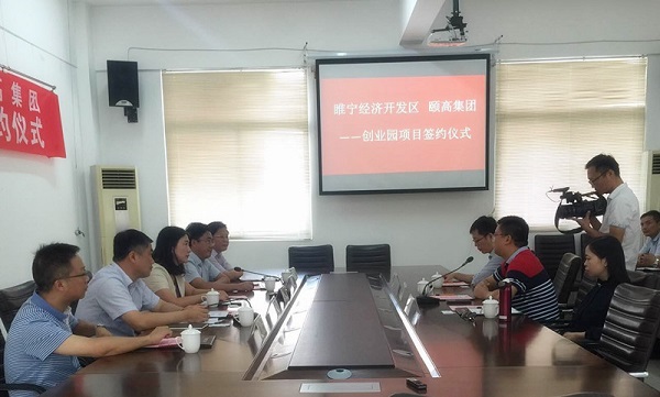 9月19日,頤高創(chuàng)業(yè)園項(xiàng)目——睢寧經(jīng)濟(jì)開發(fā)區(qū)創(chuàng)業(yè)園在江蘇省徐州睢寧經(jīng)濟(jì)開發(fā)區(qū)工作委員會(huì)會(huì)議廳正式簽約??h委常委、統(tǒng)戰(zhàn)部部長(zhǎng)秦玉錦,縣委常委、開發(fā)區(qū)黨工委書記呂亞凱,睢寧縣陳楚副縣長(zhǎng)等政府領(lǐng)導(dǎo)及頤高集團(tuán)副總裁、頤高科技CEO陳何樣、頤高互聯(lián)網(wǎng)科技副總裁施赟星、頤高互聯(lián)網(wǎng)科技運(yùn)營(yíng)總監(jiān)張燕杰等出席了簽約儀式。簽約儀式前,陳何樣與睢寧縣縣委常委、統(tǒng)戰(zhàn)部部長(zhǎng)秦玉錦等政府領(lǐng)導(dǎo)進(jìn)行會(huì)晤,雙方就睢寧經(jīng)濟(jì)開發(fā)區(qū)創(chuàng)業(yè)園項(xiàng)目情況進(jìn)行了愉快交流。