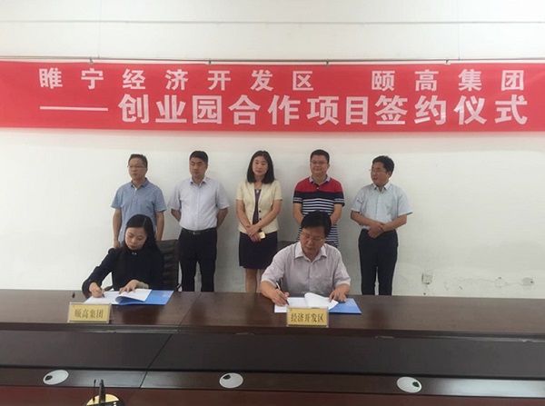 開發(fā)區(qū)黨工委委員管委主任崔學(xué)永與頤高互聯(lián)網(wǎng)科技副總裁施赟星作為雙方代表,簽署了睢寧縣經(jīng)濟(jì)開發(fā)區(qū)創(chuàng)業(yè)園投資協(xié)議。