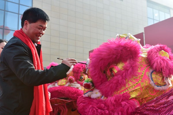 頤高集團(tuán)董事長(zhǎng)翁南道為舞獅點(diǎn)睛