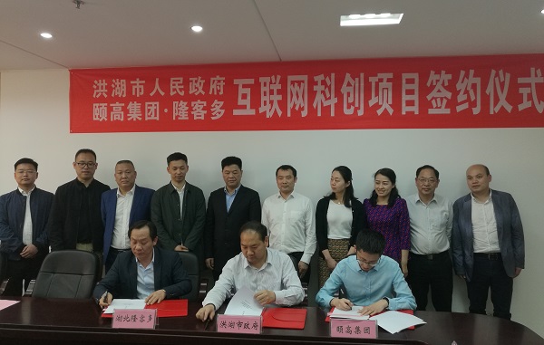 會上,洪湖頤高隆客多互聯(lián)網(wǎng)科創(chuàng)大廈項(xiàng)目正式簽約。