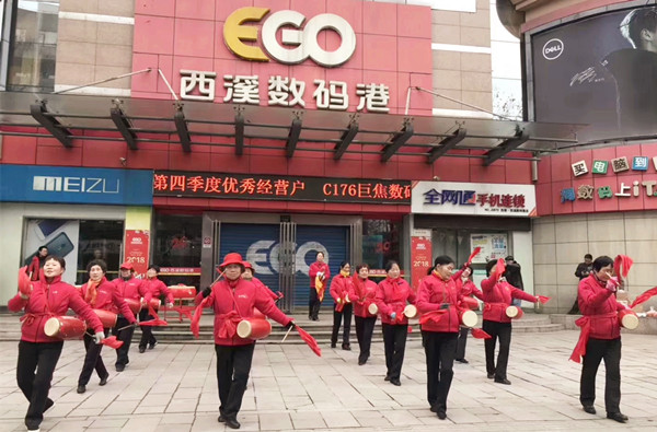 今早(正月初八)8點50分,由頤高數(shù)碼工作人員及商戶組成的鑼鼓歌舞表演隊,在頤高數(shù)碼杭州四個賣場大門前舉行了狗年開市慶典活動。表演隊鑼鼓方陣首先以“敲鑼打鼓慶新年,歡天喜地迎開市”為表演主題,為慶典拉開了序幕,緊接著歌舞方陣用優(yōu)美的舞姿演繹著“新春福旺迎好運,佳節(jié)吉祥開門紅”的美好愿景,在喧鬧的鑼鼓聲和熱烈的歡呼聲中,戊戌狗年頤高數(shù)碼杭州全部店面開始正常營業(yè)!