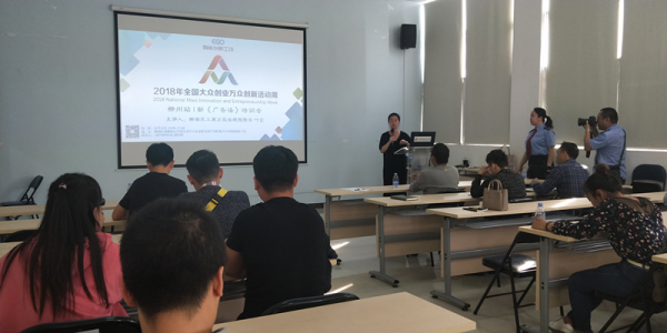 2018全國大眾創(chuàng)業(yè)萬眾創(chuàng)新活動周柳州站,柳南智能創(chuàng)新工場組織工場內(nèi)企業(yè)學習新《廣告法》。