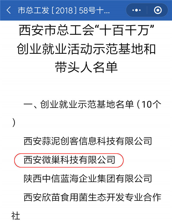 12月25日,西安頤高萬創(chuàng)(西安微巢科技有限公司)獲得由西安市總工會(huì)授予的“十百千萬”創(chuàng)業(yè)就業(yè)活動(dòng)示范基地稱號(hào),充分肯定了西安頤高萬創(chuàng)在全市創(chuàng)業(yè)創(chuàng)新工作中的積極作用。
