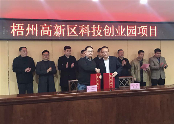 2019年1月21日,梧州互聯(lián)網(wǎng)+科技創(chuàng)業(yè)園項(xiàng)目正式簽約。梧州市副市長(zhǎng)、梧州高新區(qū)黨工委書記姜云飛,梧州市高新區(qū)管委會(huì)主任覃汝勝,頤高集團(tuán)副總裁、頤高新經(jīng)濟(jì)總裁、頤居美麗鄉(xiāng)村董事長(zhǎng)顧鵬,頤高新經(jīng)濟(jì)副總裁陳教敏等出席了本次簽約儀式。頤高新經(jīng)濟(jì)廣西區(qū)域拓展總監(jiān)郝飛、梧州市高新區(qū)管委會(huì)主任覃汝勝代表雙方完成簽約。