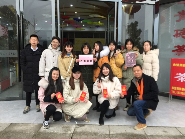 赤壁頤居美麗鄉(xiāng)村全體員工攜大學(xué)生祝開(kāi)工大吉。