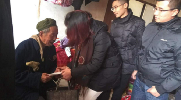 一大早,志愿者們將物料裝車,一行人驅(qū)車來到修文縣灑坪鎮(zhèn),在村支書的帶領(lǐng)下,探望上寨村與蜈蚣橋村的12位空巢老人,為空巢老人送去棉被、大米、食用油、牛奶等暖冬物品,并和老人親切交談,了解當(dāng)?shù)乜粘怖先饲闆r。