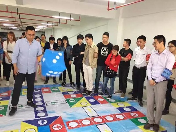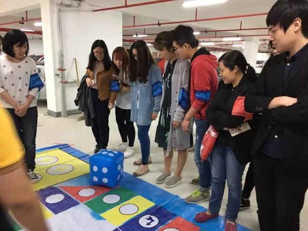 如果說滾鐵環(huán)瞬間點(diǎn)燃了選手們的參與熱情,那么真人飛行棋的亮相,可是讓選手們傻了眼?!巴?!這個(gè)飛行棋也太大了吧!滿滿都是兒時(shí)的回憶!”比賽現(xiàn)場,一陣歡聲笑語。